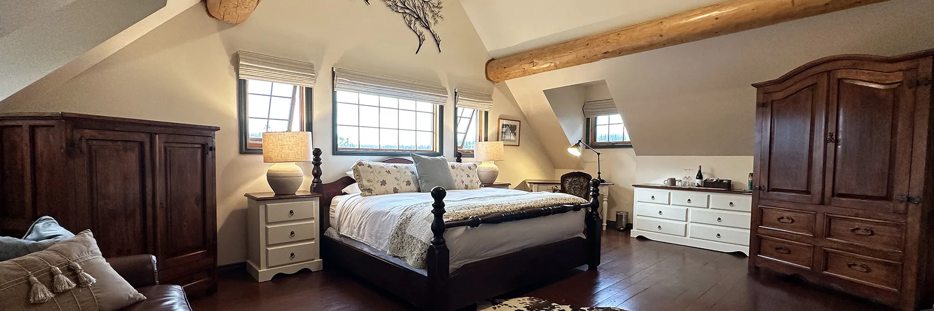 Siwash Lake Star Camp is located on the ridge portion of the property, which is across the lake from the ranch.From the main ranch house — which is the hub of the resort for dining, lounging and guest lodge rooms — you will enjoy a 10-minute walk across the home meadow, over the lake via a solar-lit boardwalk, and up the trail through grassland carpeted with wildflowers.