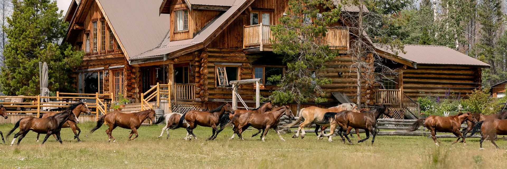 The main Ranch House at Siwash Lake Wilderness Resort is a classic Canadian luxury lodge — hand-hewn with spruce logs from the nearby forest. It is centrally located on the ranch portion of the property and is the hub of the resort. Lodge guest accommodations are located on the top floor with beautiful lake and pasture vistas.