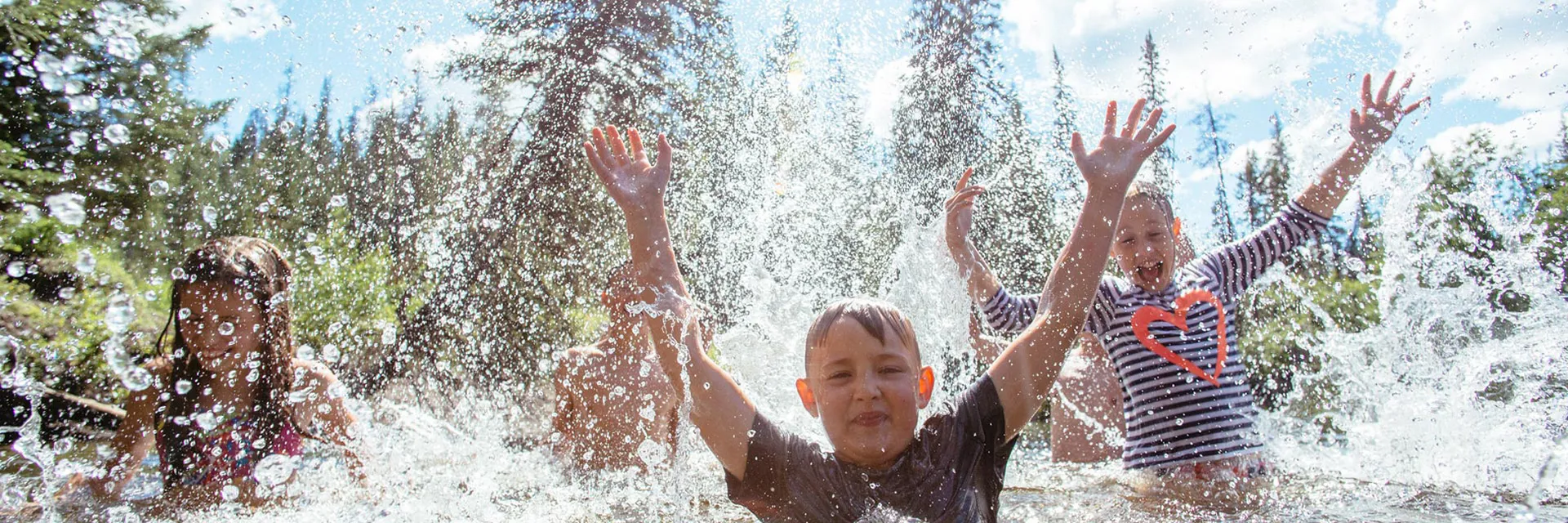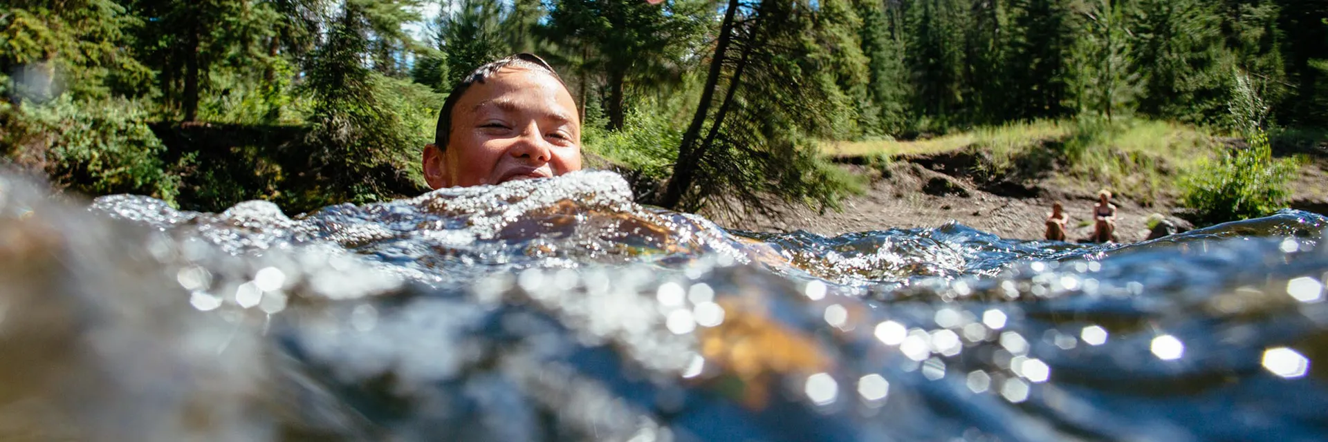 Siwash Lake is a private lake and we have a dock beginning at shore's edge that extends out past the reeds for wonderful swimming right in front of the lodge, as well as another dock further out in deep water. The water is fresh and clear, lightly mineralized, with a depth of about 20 feet, so the temperature is just right for cooling off. Most of our guests, especially the younger bunch, make this a daily event. The lake is a half mile long so keen swimmers can get a good workout if they wish.There's plenty of other opportunities for swimming in the wild while partaking in our guided half-day adventures. Try cooling off in the crystal clear waters of the bubbling pool during our signature Waterfall Fire Ecology Hike™. For those staying five nights and more, during the full day River Safari adventure, there's space in your saddle bags for your swim gear. Your trusty mount will be tied safely nearby while you take a refreshing dip in the river.